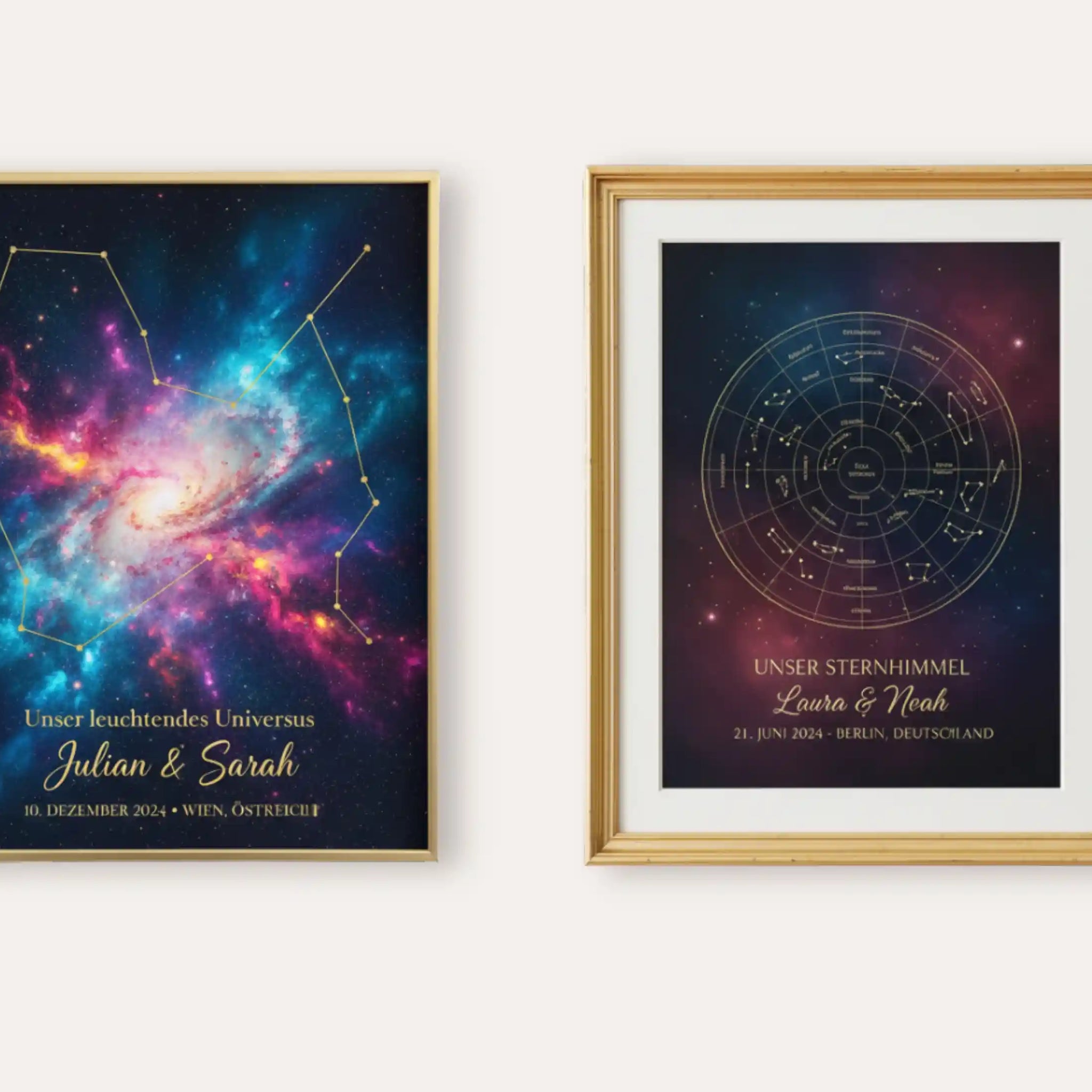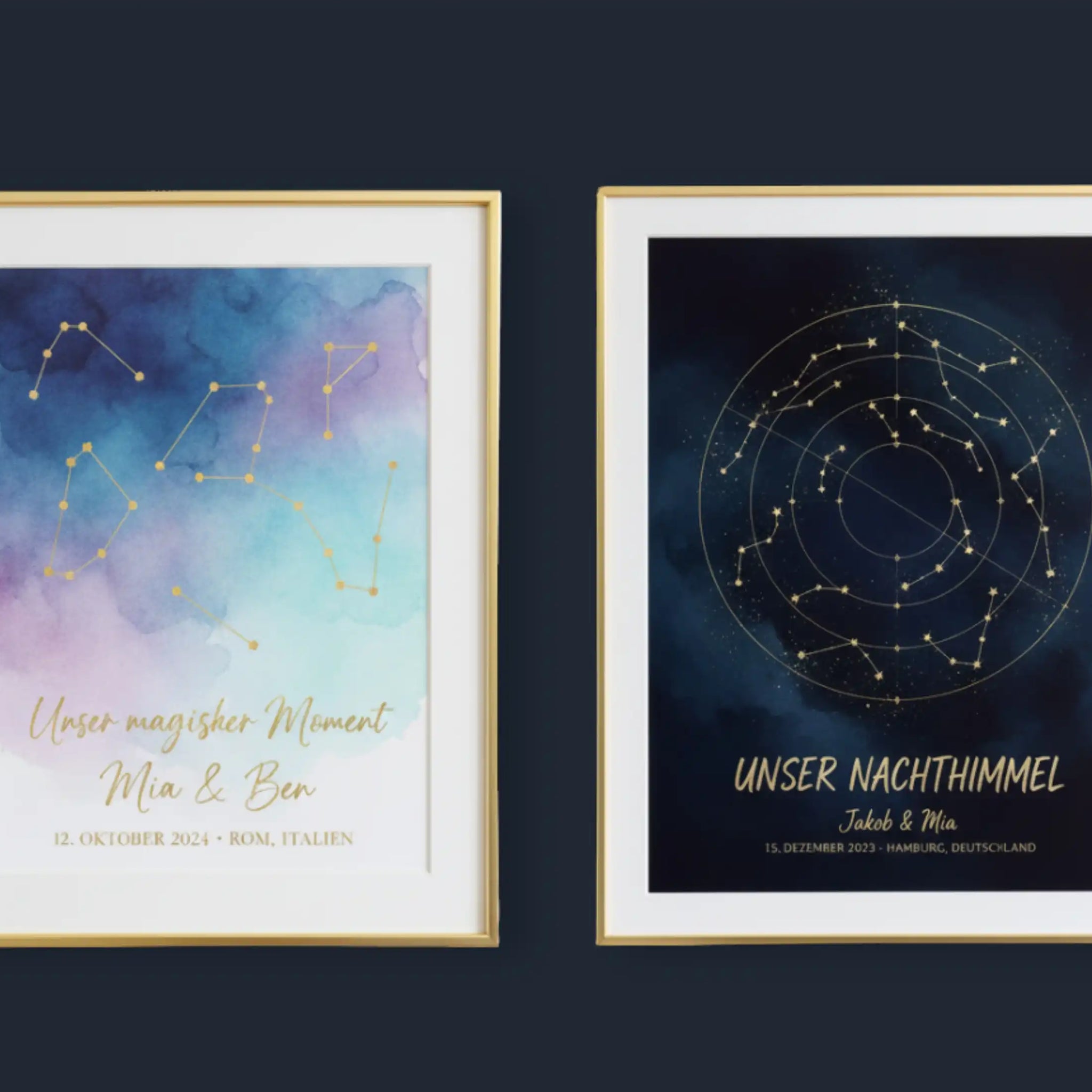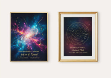 Unsere Produkte helfen Ihnen, Ihre besonderen Momente immer wieder neu zu erleben, egal wohin es Sie im Leben verschlägt. Von individuellen Sternenkarten bis hin zu personalisierten Sternbild-Drucken – jedes Stück wird aus hochwertigsten Materialien und mit größter Liebe zum Detail gefertigt. Wir bringen die Sterne in Einklang, um ein einzigartiges Erinnerungsstück zu schaffen, das ein Leben lang hält.